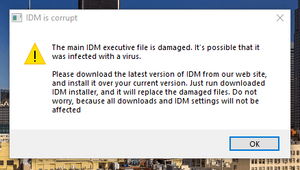 Mình cài đặt và kích hoạt thành công bản mới nhất, đã copy file idm.exe vào và IDM hoạt động bình thường nhưng thỉnh thoảng lại hiện thông báo này là sao vậy bạn