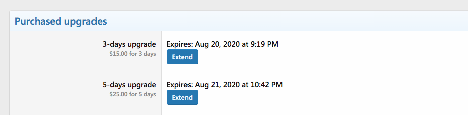 • Gia hạn/ Gia hạn Sớm (CHỈ PRO): Cho phép mở rộng các bản nâng cấp không định kỳ của người dùng trước khi hết hạn