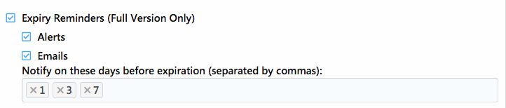 • Định cấu hình ngày trước khi hết hạn (hỗ trợ nhiều ngày)
