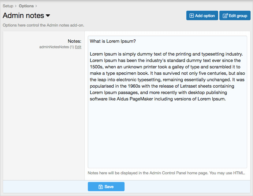 Thêm một vùng ghi chú trong Bảng điều khiển dành cho quản trị viên (AdminCP hay ACP).