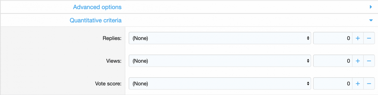 • Các tùy chọn "Tiêu chí định lượng" mới: Lọc theo lượt xem, câu trả lời, điểm bình chọn