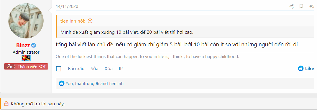 Theo mặc định, thành viên thường sẽ không có nút trả lời ở chủ đề bị khóa nên mặc dù ở phiên bản trước, khung soạn thảo đã bị tắt với Moderator nhưng nút Trả lời thì vẫn còn. Ở phiên bàn này, nút Trả lời sẽ bị tắt ở các chủ đề bị khóa với Moderator.