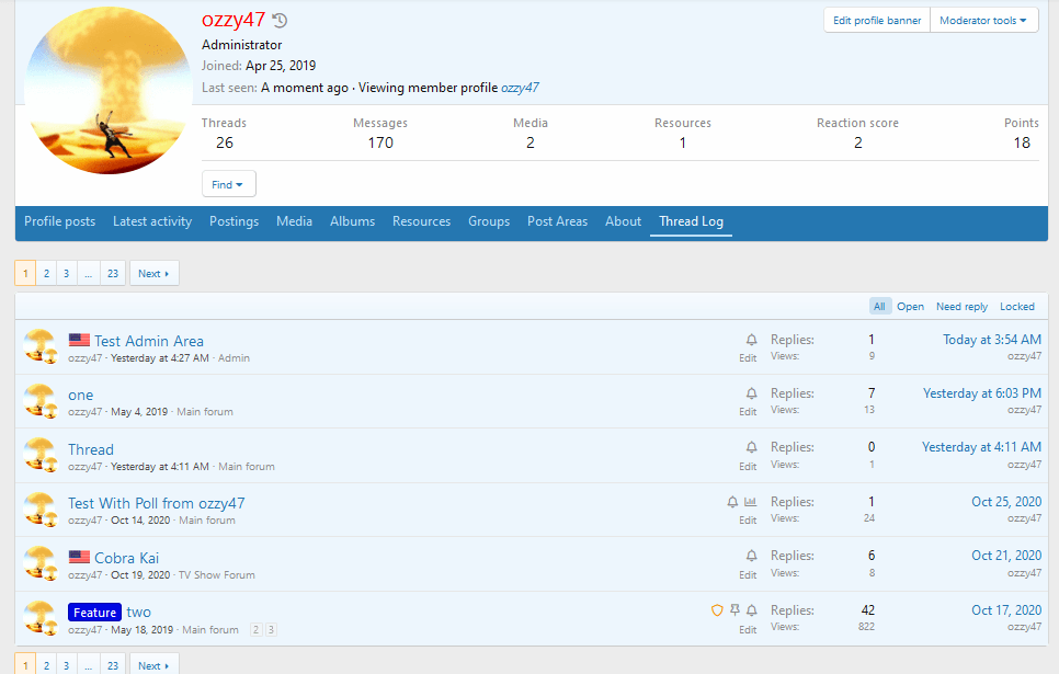 [OzzModz] User Thread Log - Nhật ký chủ đề người dùng XenForo 2