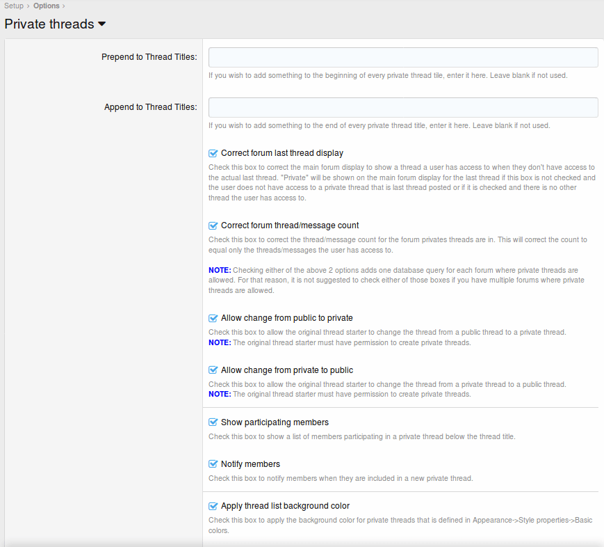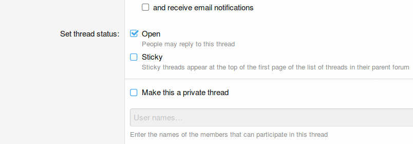 LƯU Ý: Vì lý do bảo mật, quản trị viên có thể xem tất cả các chuỗi riêng tư. Người điều hành không thể. Chỉ người khởi động chủ đề ban đầu mới có thể đặt một chủ đề ở chế độ riêng tư/ công khai.