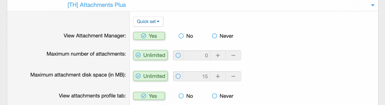 Quản lý nhiều chủ đề và tập tin đính kèm cho người dùng có thể là một việc vặt. Với add-on này, người dùng của bạn sẽ có thể đi đến một địa điểm để xem và quản lý tất cả các tập tin đính kèm và vị trí của họ một cách dễ dàng! Đồng thời, quản trị viên có thể đặt giới hạn mới cho tập tin đính kèm, bao gồm số lượng tối đa trên mỗi bài đăng và kích thước tập tin.
