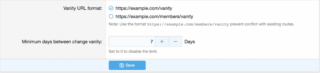 - Khả năng lựa chọn giữa https://example.com/vanity hoặc https://example.com/members/vanity