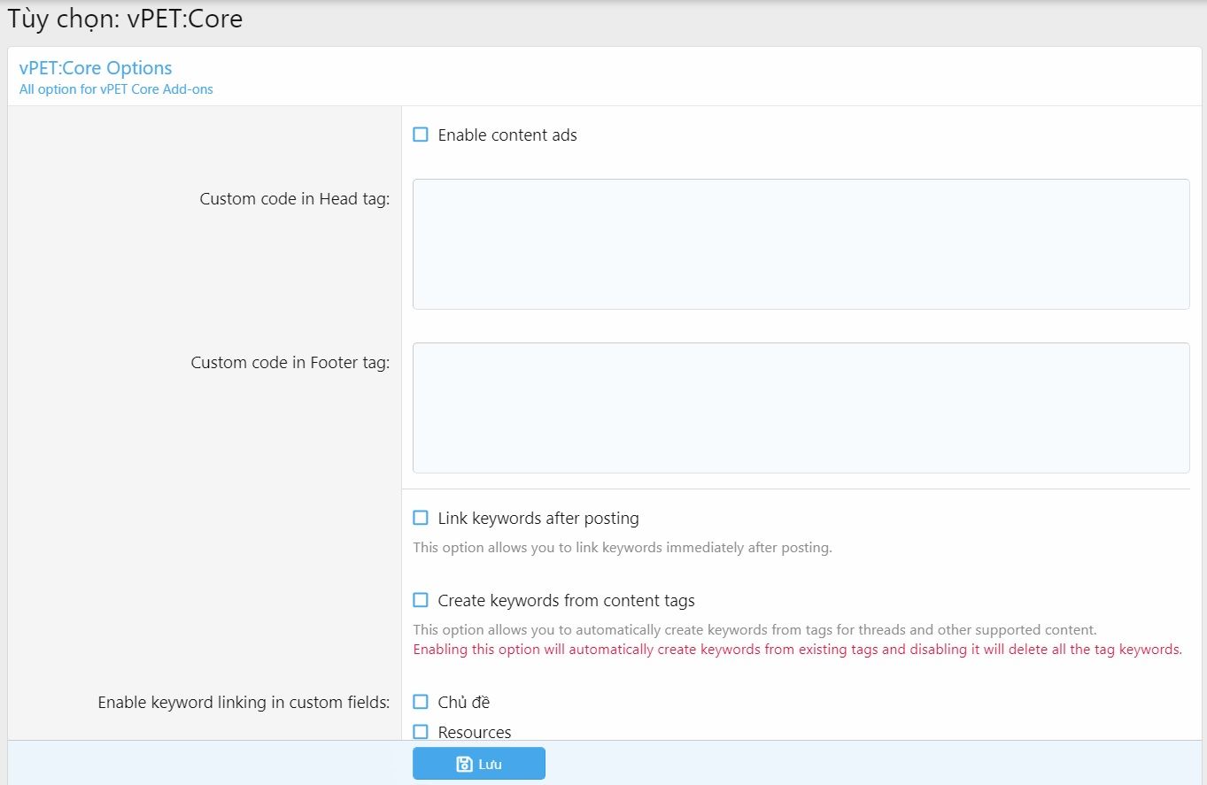 Addons vPET Core được phát triển bởi thành viên @thuyet951, có nhiều tính năng hữu ích và được nhiều người sử dụng. Tuy nhiên, do website của thành viên này đã ngừng hoạt động và để addons này không bị lỗi thời, nên mình đã hợp tác với thành viên @thuyet951 để tiếp tục phát triển addons này cho phù hợp với các phiên bản Xenforo mới nhất.
