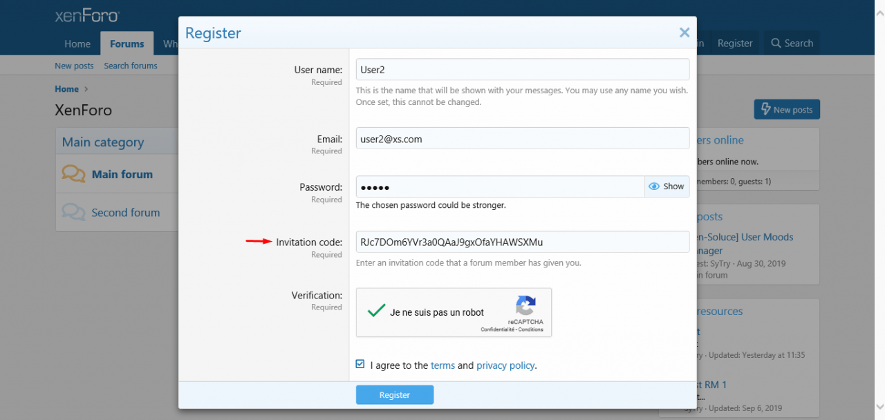 Add-on này cho phép bạn tạo mã mời để tham gia diễn đàn của mình và hơn thế nữa. Mã mời là cần thiết để đăng ký, bạn có thể quản lý mã của bạn một cách dễ dàng!