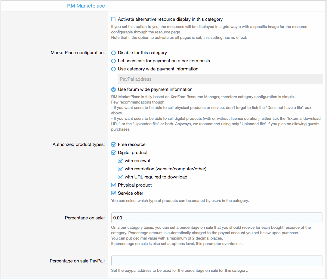 - Cho phép mỗi người dùng nhập địa chỉ paypal của riêng họ để bán tài nguyên của họ.